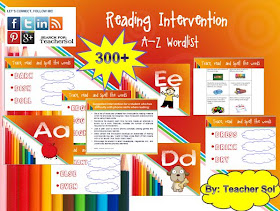 This 166 page-packet has 300+ A-Z words which can be used for homework, word wall, spelling practice or reading drills as a supplementary resource to an existing reading intervention program! Included in this awesome packet are intervention suggestions for a student who has a difficulty with phonic skills when reading!